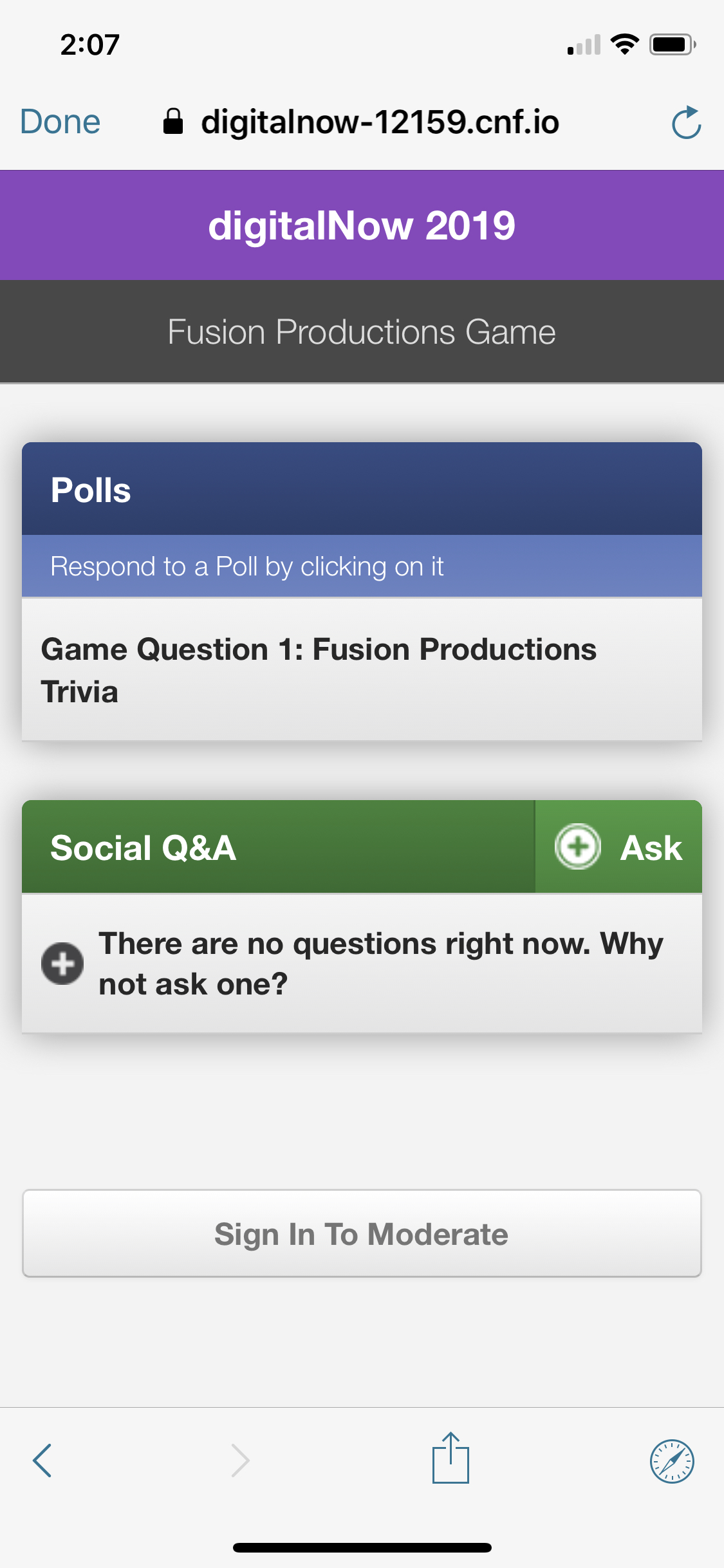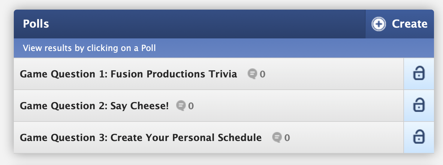 - In the Conference IO Admin Platform, find the [GAME NAME] session. Add trivia game questions as poll questions within the session. Use a variety of trivia questions. For example, questions can be from: