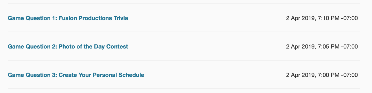 - Conferences IO Admin Platform - Create a new session called: [GAME NAME]. In this example, the game name is: Fusion Productions Game. In the session details section, add the game information and instructions.