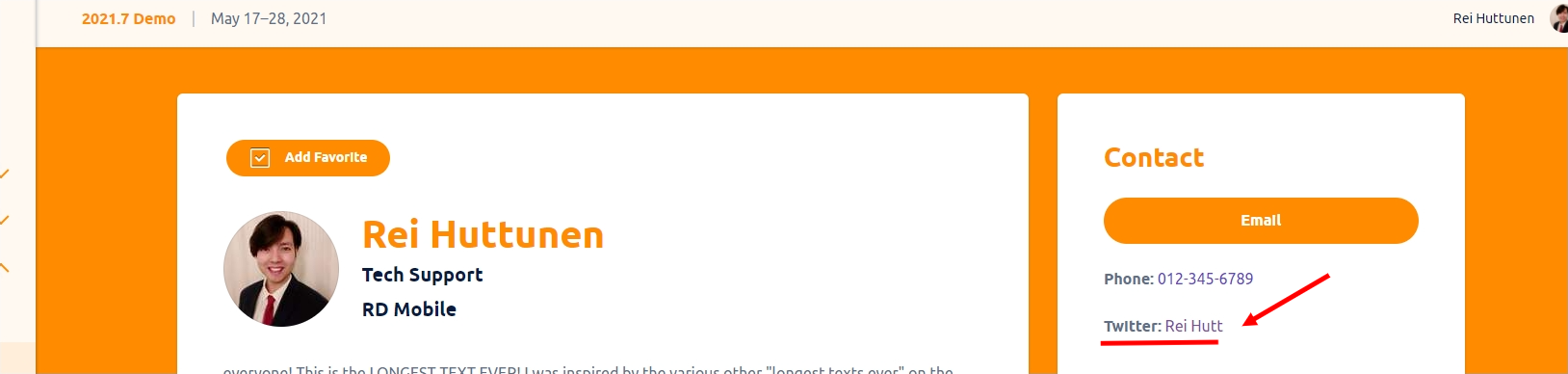 Following the above steps should populate the user's Directory profile Contact information with social network links for current and future events.