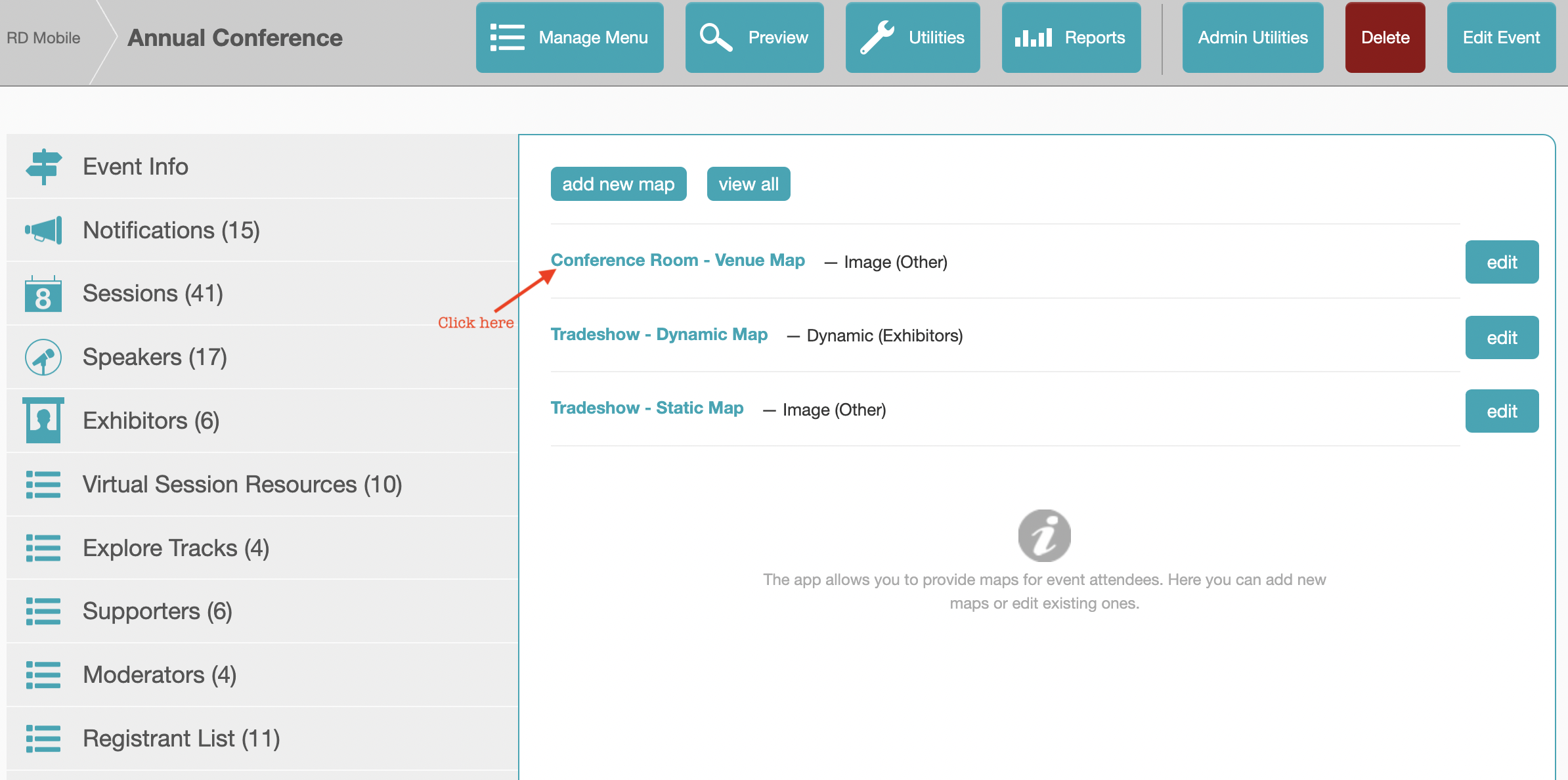To add a new map, simply click on Maps in the Menu Items List > click on the blue [Add New Map] button.