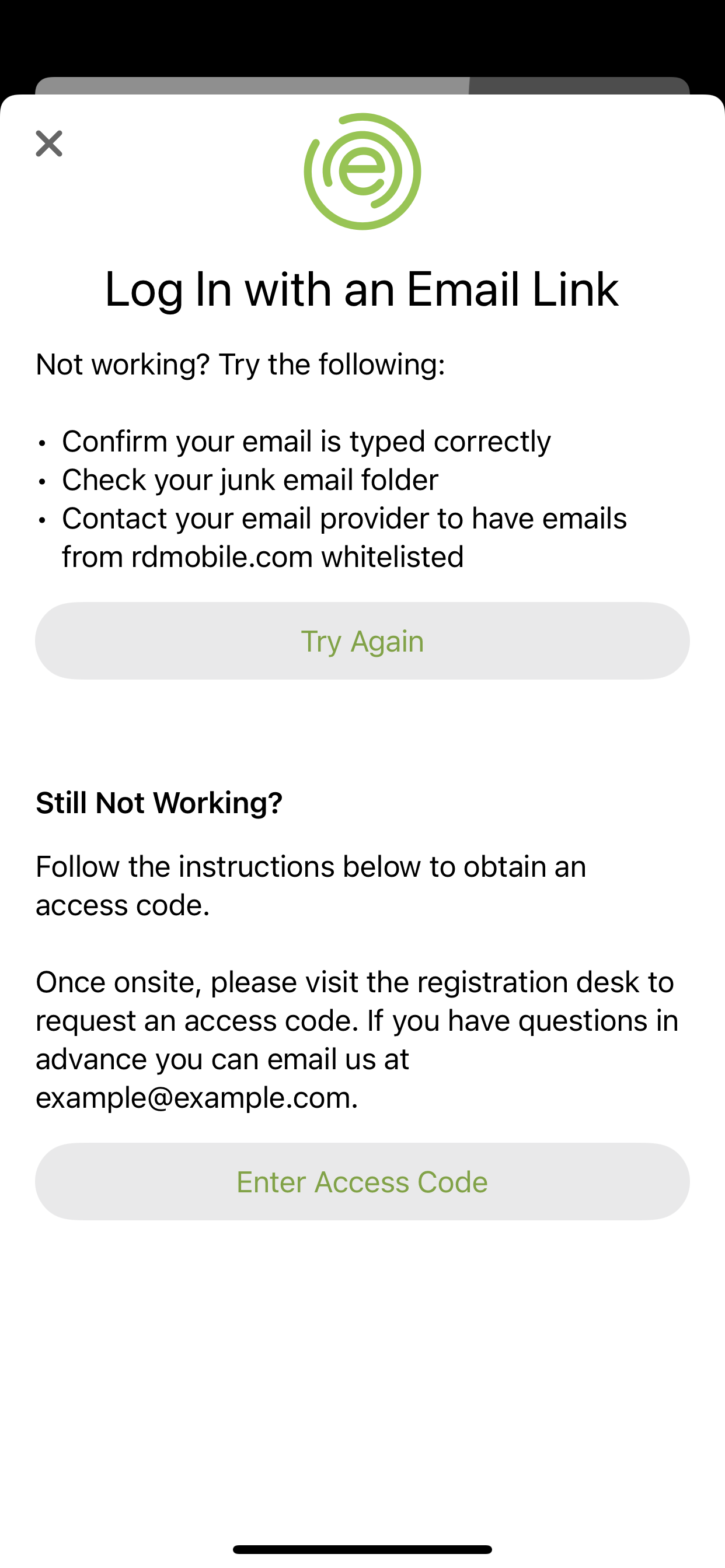 To address the above we've implemented Access Codes which can be used in place of Login Links. You'll want to provide language specific to the configuration of your event. Below are a few examples.