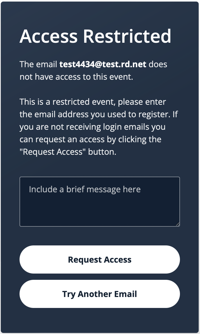 - Attempting to log into a restricted event with a non-registered email address