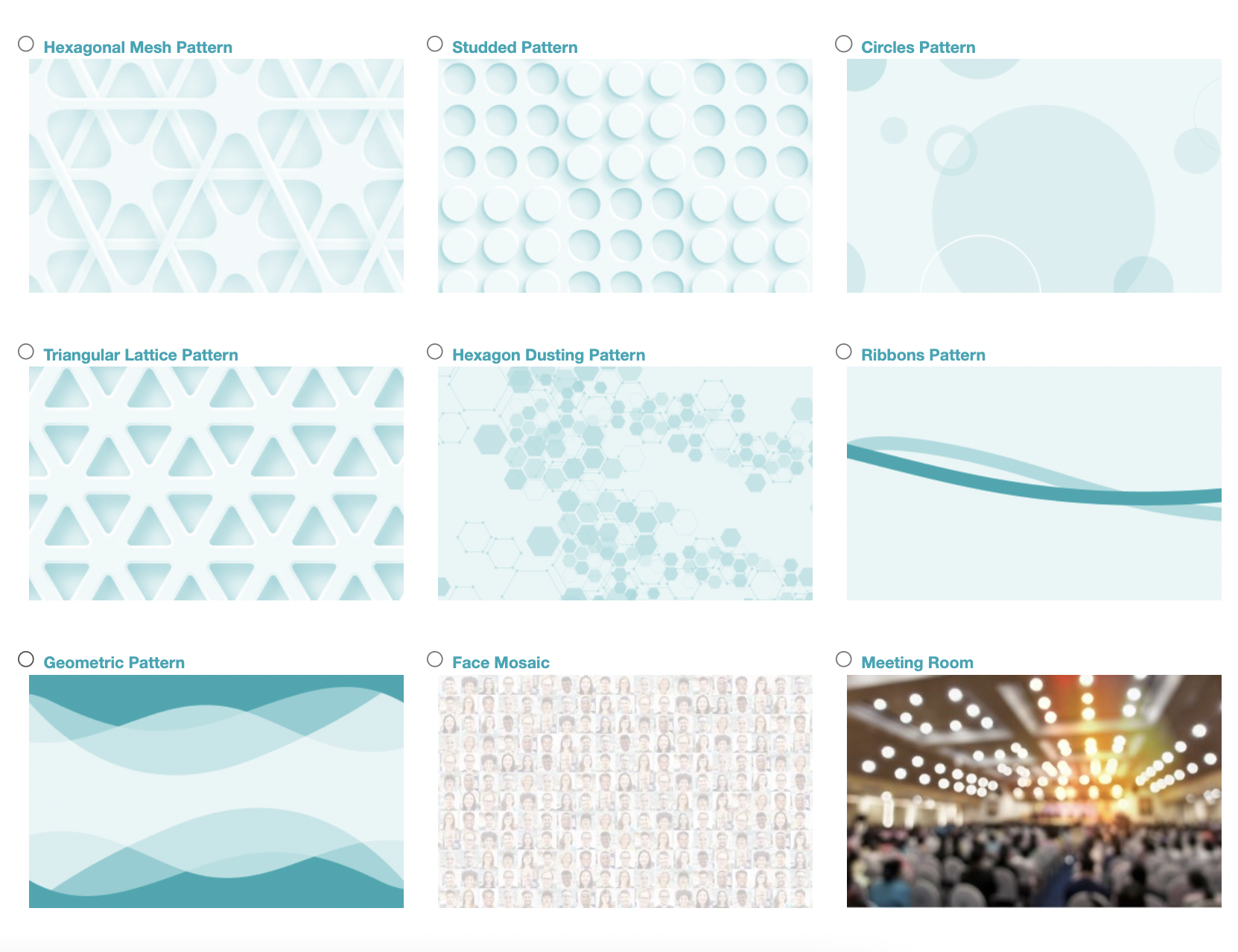 - Website Background will be the theme for the desktop version of your event. We have 9 hardcoded options for you to choose from or you can choose to upload your own custom image for additional branding.