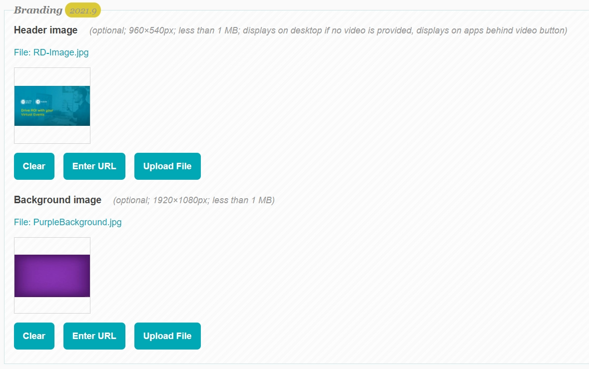 For optimum quality, we recommend an image size of 960x540px and 1920x1080px for the Header and Background image respectively.