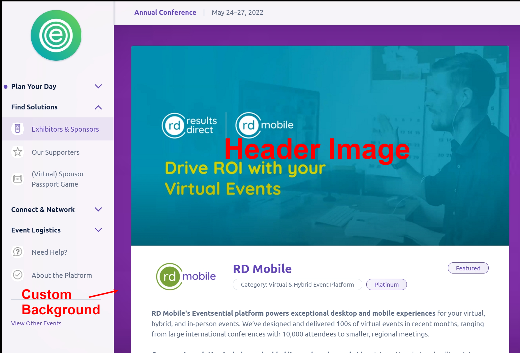 Exhibitors can upgrade their branding on the platform utilizing: