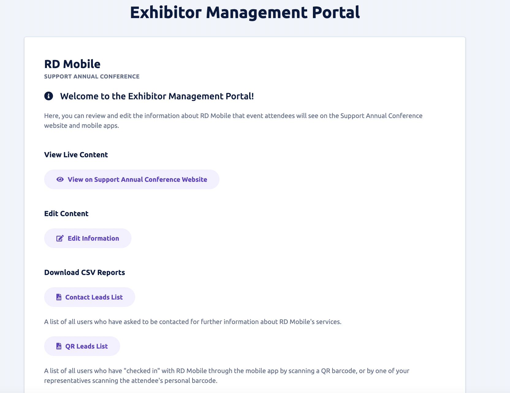 - Exhibitor Management Portal