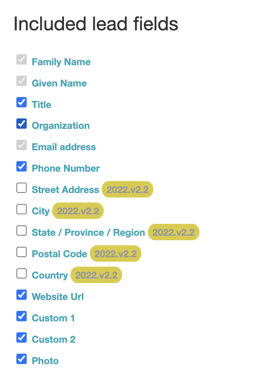 Choose what attendee information gets shared by selecting the appropriate lead fields: