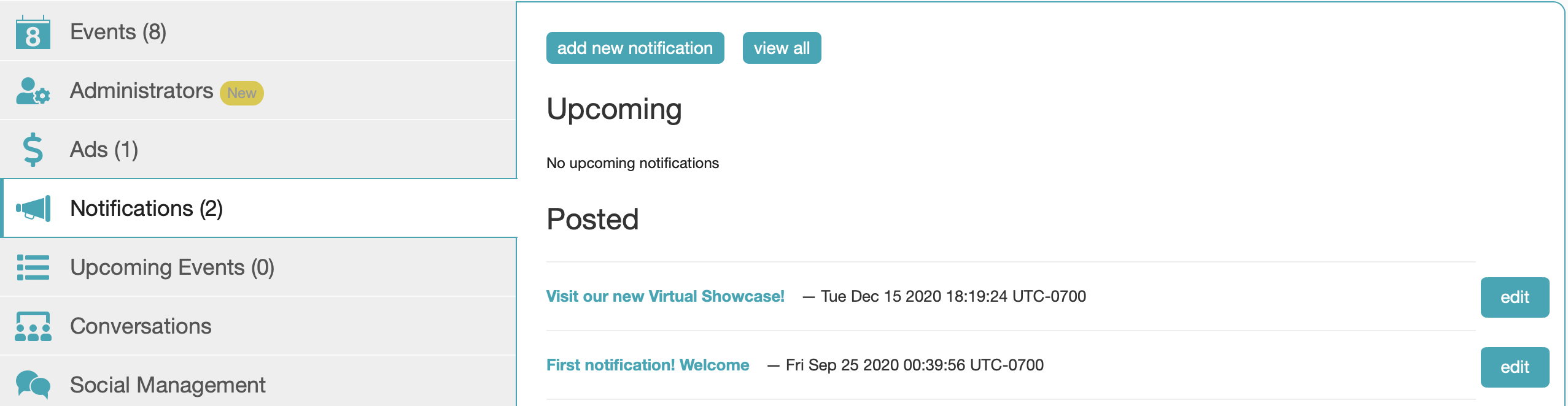 - Upcoming notifications (scheduled but not yet visible)