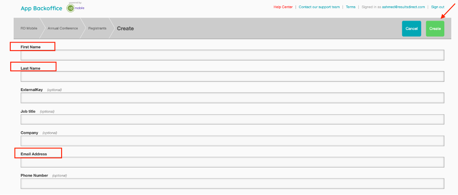 - Fill out relevant fields. First Name, Last Name, and email are required