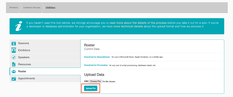 7. Once selected, click 'Upload File', and then confirm you wish to apply changes to the data when prompted.