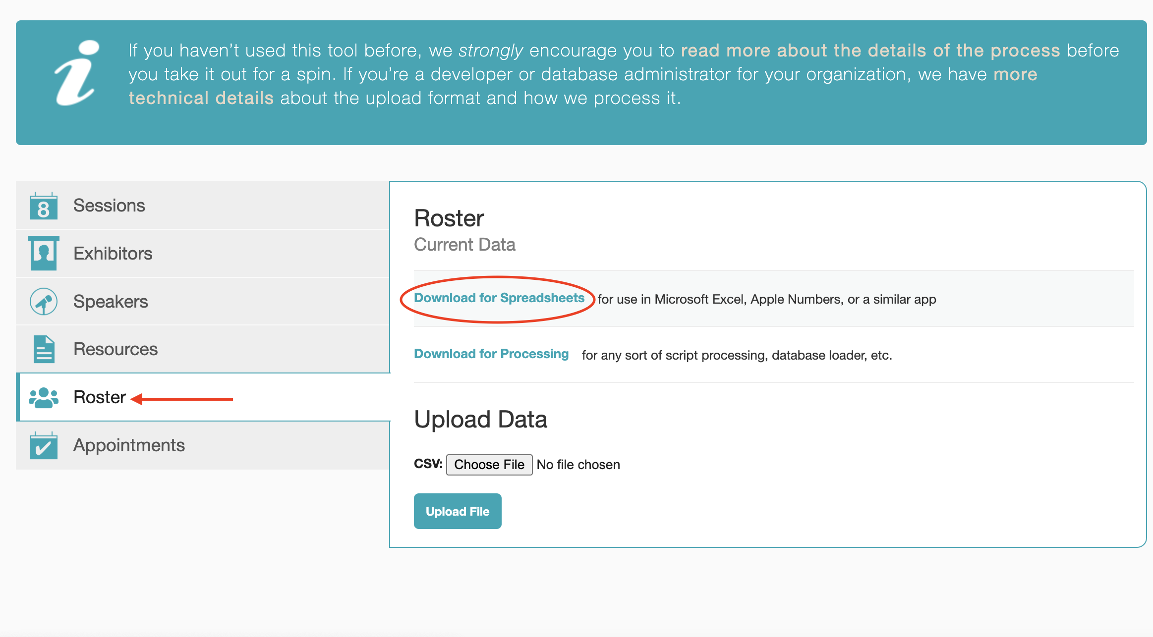 - 3.Click Download for Spreadsheets to download the CSV file