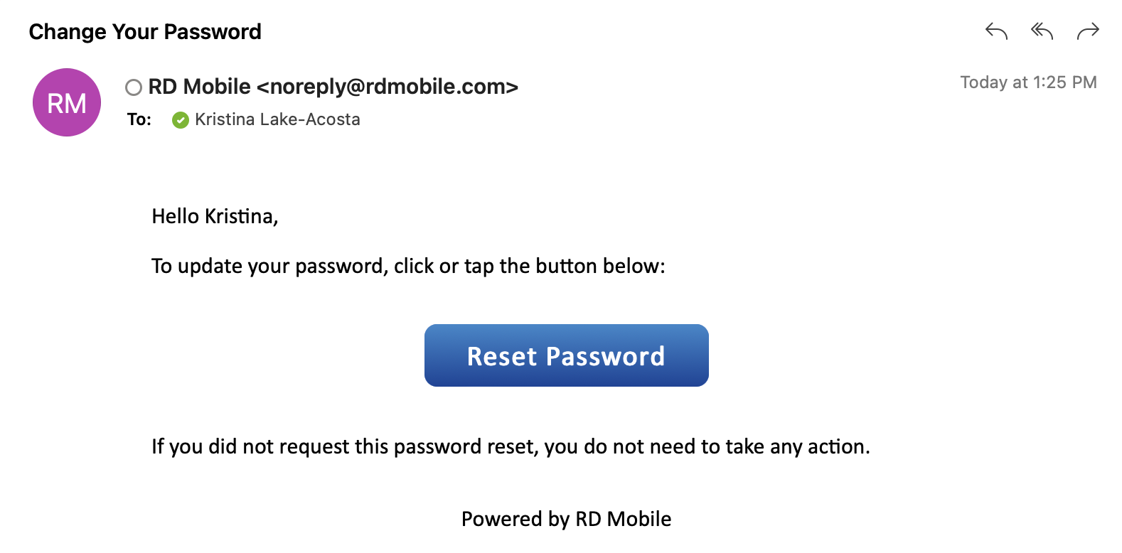 - Step 4 will trigger a password reset email that attendees can use to create a password so they can log in. The email subject is "Change Your Password" and it will come from noreply@rdmobile.com.