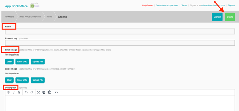 - Fill out relevant fields (ex: Name, small Image, description)