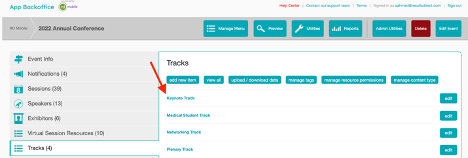 What are tracks? Tracks can be used to add a level of organization to your sessions by categorizing them in a way that makes it easier for your attendees to find the sessions they're looking for.