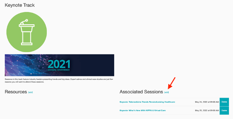 - Click Add next to Associated Sessions and select the sessions that belong to this track.