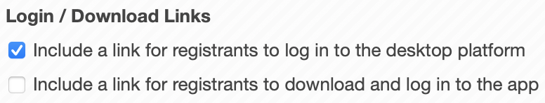 Be sure to include links to access your event. In the age of virtual events you now have the option to send out the Desktop link, or the Mobile App link, or both.