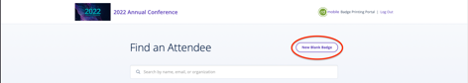 4. To create new badges for non-registrants, click the “New Blank Badge” button on the upper right-hand corner. NOTE: Newly created non-registrant badges will not be assigned a QR-Code. Instead, the text: "GUEST" will appear.