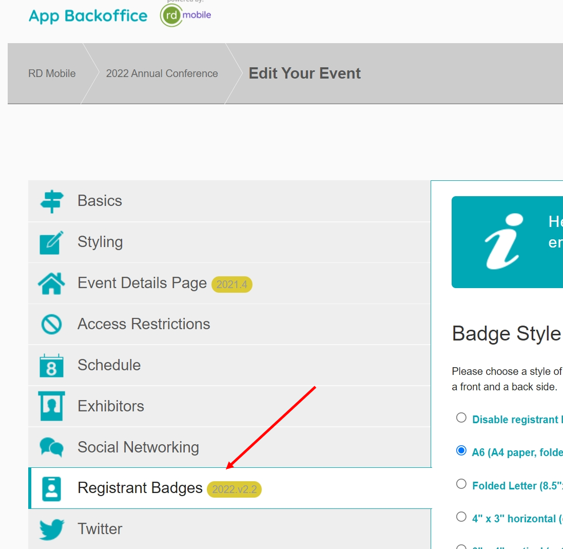 1. Badge Style: With the 2022.v2.2 release, two new badge styles were introduced: A6 (A4 paper, folded into quarters) and Folded Letter (8.5” x 11” paper, folded into quarters).