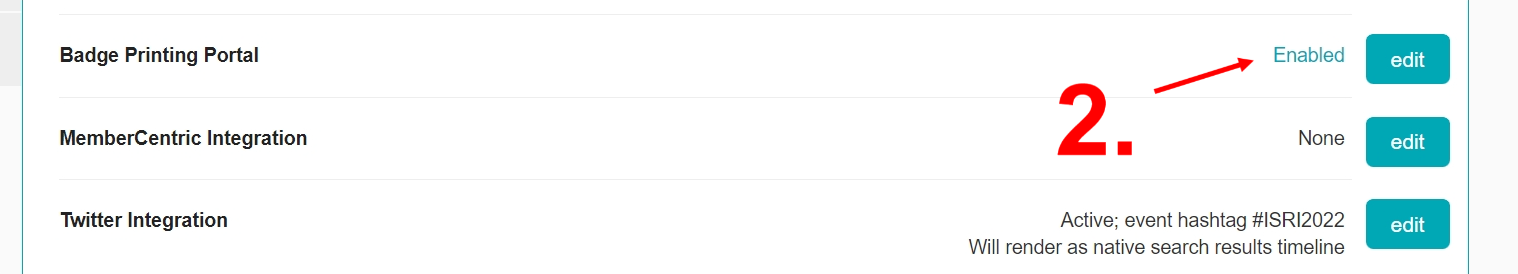 1. Enable the Badge Printing Portal by setting the: