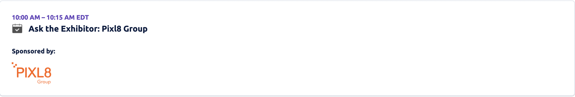 Allow your Session Exhibitors/Sponsors to have a more prominent display. If enabled, the associated exhibitor's logo will appear in the session list view, next to 'Sponsored by' text as shown below. This feature is limited to the responsive website.