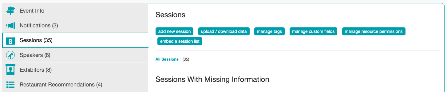 Session Description is where you can add all of the descriptive content about a session. There is no content limit. The Session Descriptions can be uploaded in bulk or created individually and edited at any time.