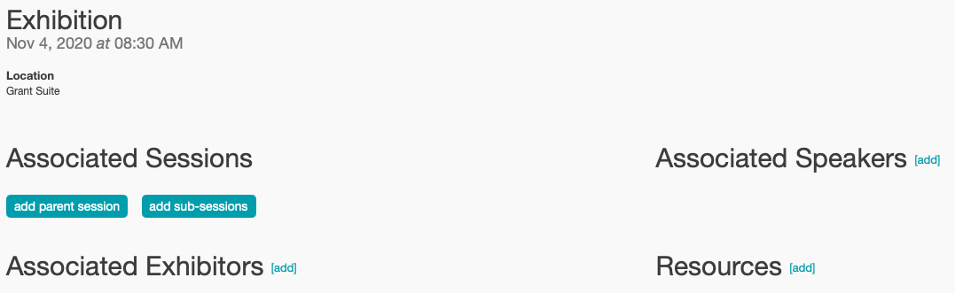 We also have the ability to associate sessions to one another. For example, if you have session tracks that are happening concurrently, you can click the Add Sub-Sessions button.
