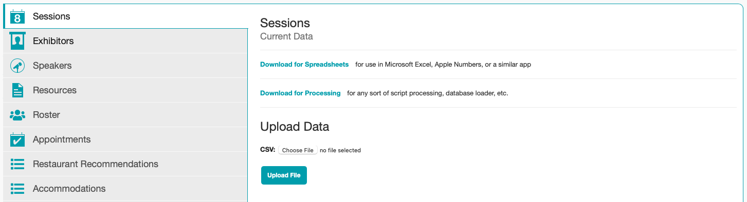 The other way to add sessions would be through a bulk upload. To do so, navigate to the Sessions tab and click the Upload/Download Data button.
