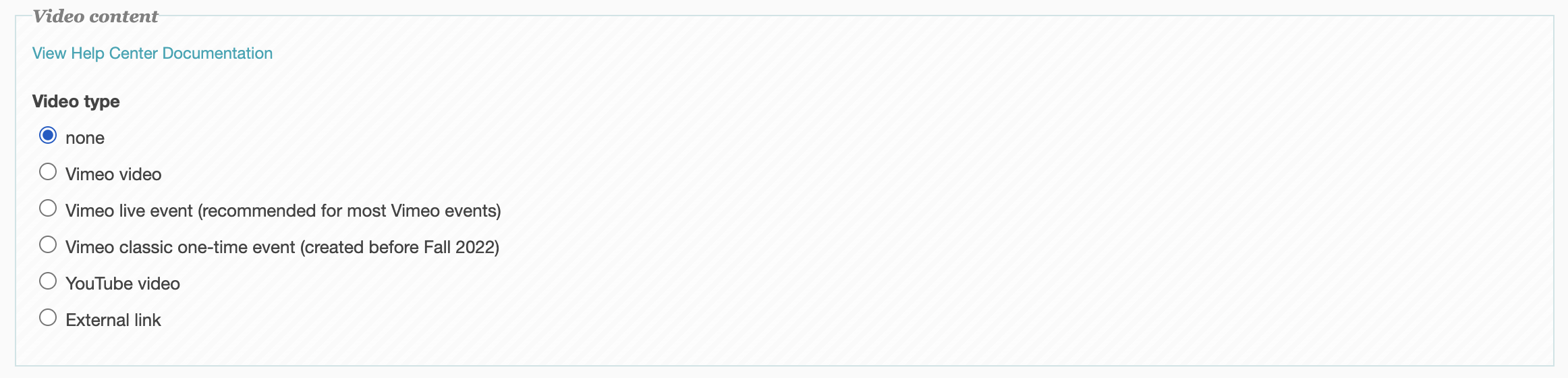 Next is the Video Content section. These settings will be relevant if you will be presenting session content to your attendees. You have the option to embed either a prerecorded video or a live stream video through the Vimeo and YouTube platform. These setting will require a Vimeo license, so if you have any questions feel free to contact your Product Specialist. All you will need to carry over your Vimeo content into the Results Direct platform is either the Video ID if it is a recording, or the Live Event ID if the video will be live streamed. For Youtube, you can identify the video ID you will need to add to the session with the example below: