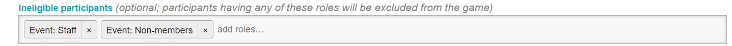 • Choosing zero or more event roles that make a participant ineligible for the game