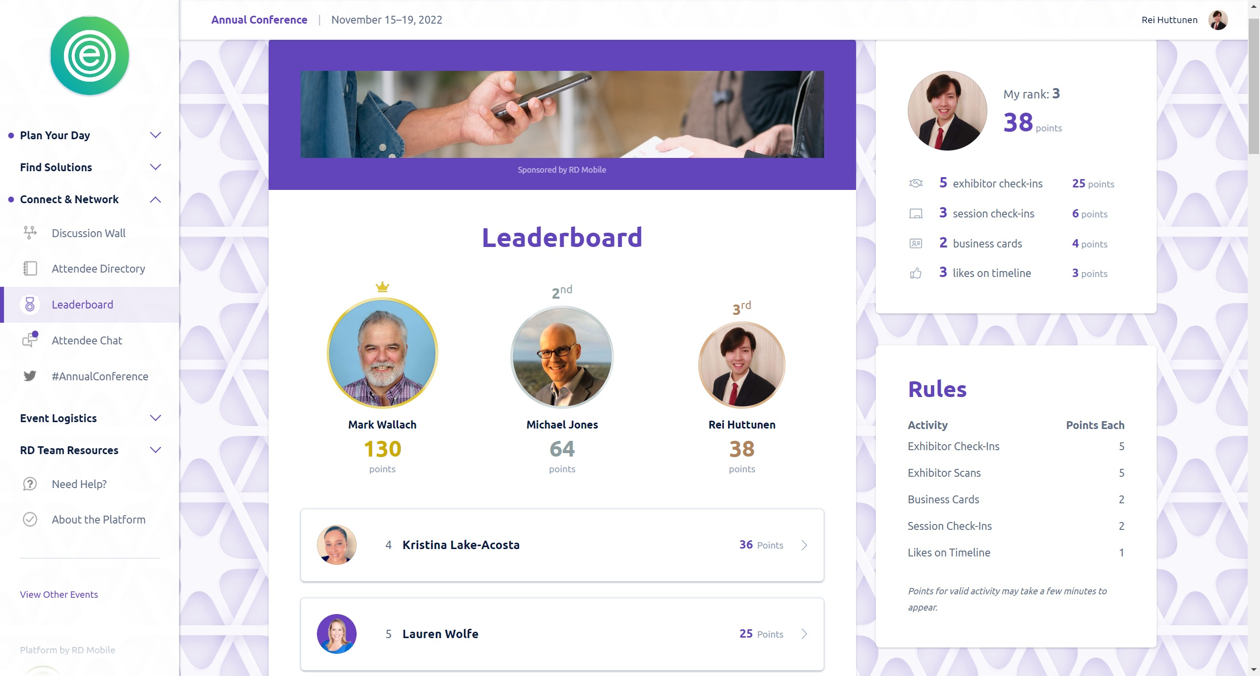 The Leaderboard improves adding more ways to incentivize users to engage with event content through gamification.