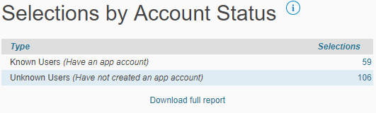 This area provides an overview of how many unique user devices have selected your organization, separated by platform. For example, if a single user accesses your organization on both their phone and their tablet, it will be counted as 2 selections.