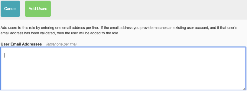 - Roles are based on email addresses. Add the desired email addresses. If you have an Excel list of email addresses, you can save the Excel list as a Tab Delimited Text (.txt) file to produce a text list which can be copied and pasted. (See Integration section below to pull data from AMS / CMS)